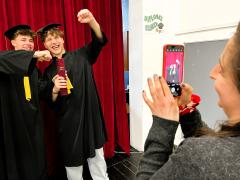 Az Infóstandnál a komáromi Selye János Egyetem és a győri Széchenyi István Egyetem képviselői adtak tájékoztatást a továbbtanulási lehetőségekről, míg a Diplomás előkép programban a diákok azt is megtapasztalhatták, milyen érzés diplomával a kézben a jövőjükre tekinteni.