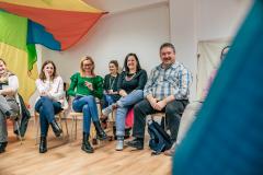 Az ebédszünet után szintén a kiscsoportos munkaformával zajlott a rendezvény, öt párhuzamos program közül választhattak a résztvevők, két idősávban. Ezek között pedig a találkozások és kötetlen beszélgetések mellett kitekintettünk a Magyarországi kollégáink nehéz helyzetésre is: a résztvevők egy közös fotó keretében fejezték ki szolidaritásukat. Ezzel a kis gesztussal szeretnénk melléjük állni és kifejezni, hogy velük vagyunk és kívánjuk nekik, hogy mielőbb méltó körülmények között, megfelelő szakmai autoritással és szabadsággal folytathassák munkájukat.