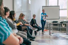 A nyitóelőadás után a résztvevők kiscsoportos workshopokon folytatták a közös munkát, emellett pedig lehetőségük nyílt egy-egy próbamentorálásra is, a komáromi Regionális Pedagógustámogató Mentorközpont munkatársai jóvoltából.