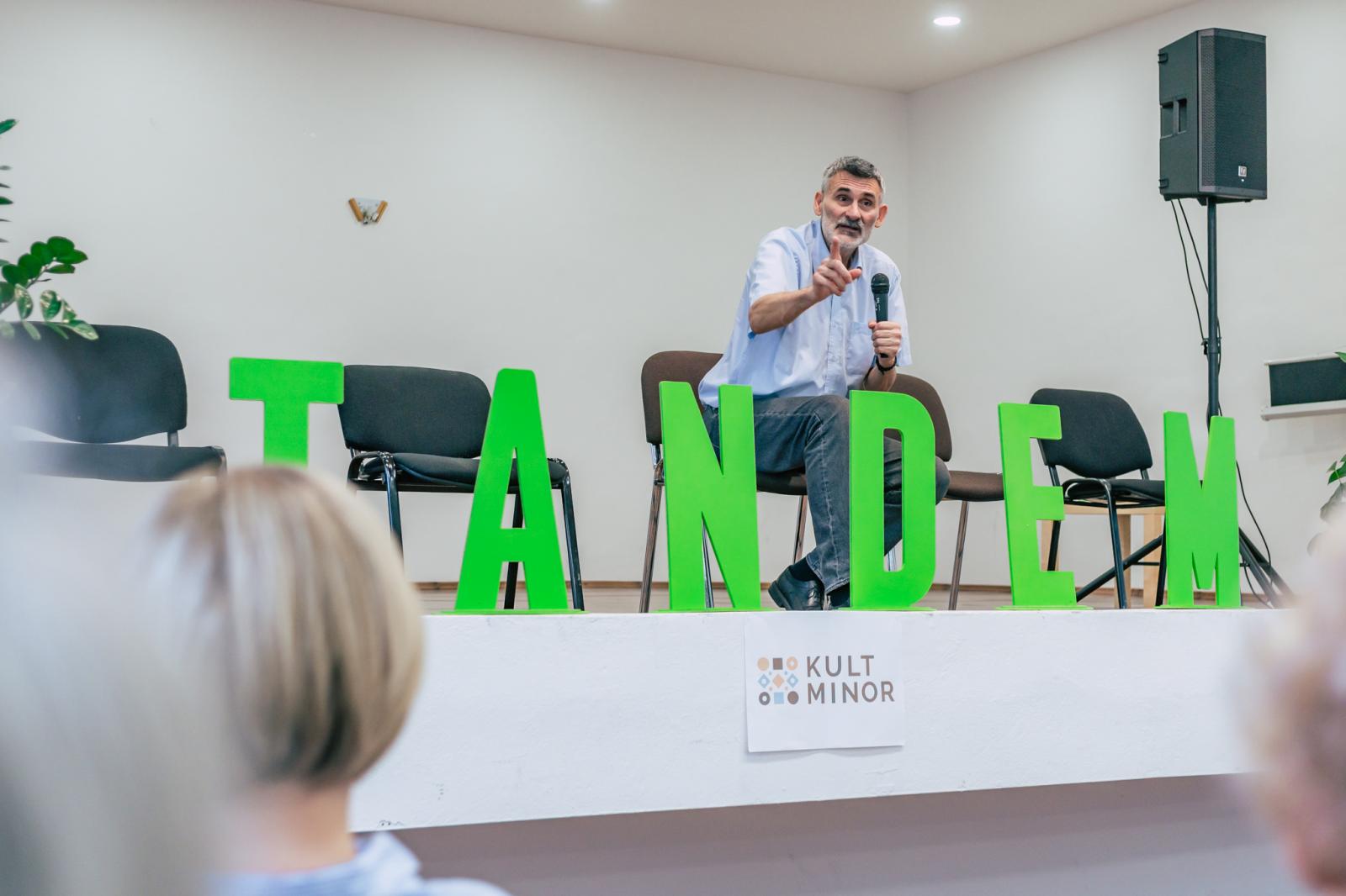 November 17-én 70 fő részvételével, 20 előadó és workshoptartó közreműködésével és a TANDEM képzőivel, munkatársaival és önkéntesekkel kiegészült csapatával megvalósult az idei élménykonferenciánk. Pedagógusok, egyetemi hallgatók és különböző humán szakterületeken tevékenykedő szakemberek jöttek el Komáromba az ország legtávolabbi pontjairól, valamint Magyarországról is, hogy együtt töltsenek egy inspiráló, szívet-lelket megmozgató, találkozásokkal és közös tanulással teli napot, amely igazán mozgalmasra és színesre sikeredett hangos énekléssel, közös színházi élménnyel, oktatásügyről szóló beszélgetésekkel és nem utolsósorban önfeledt játékkal.