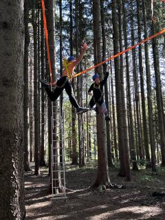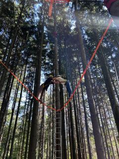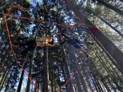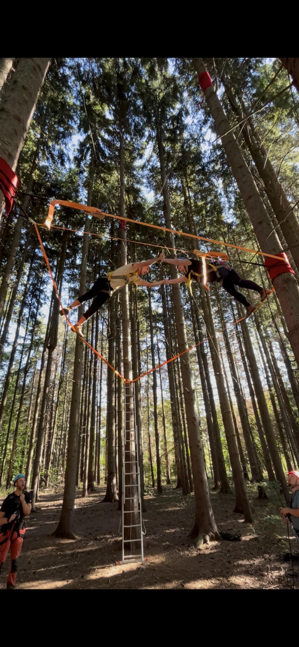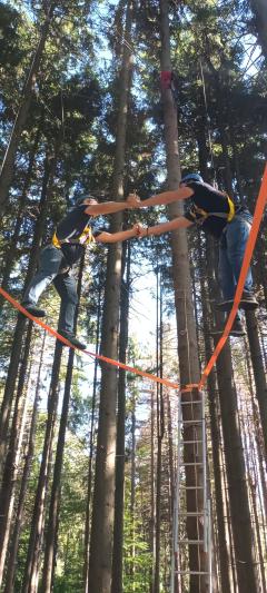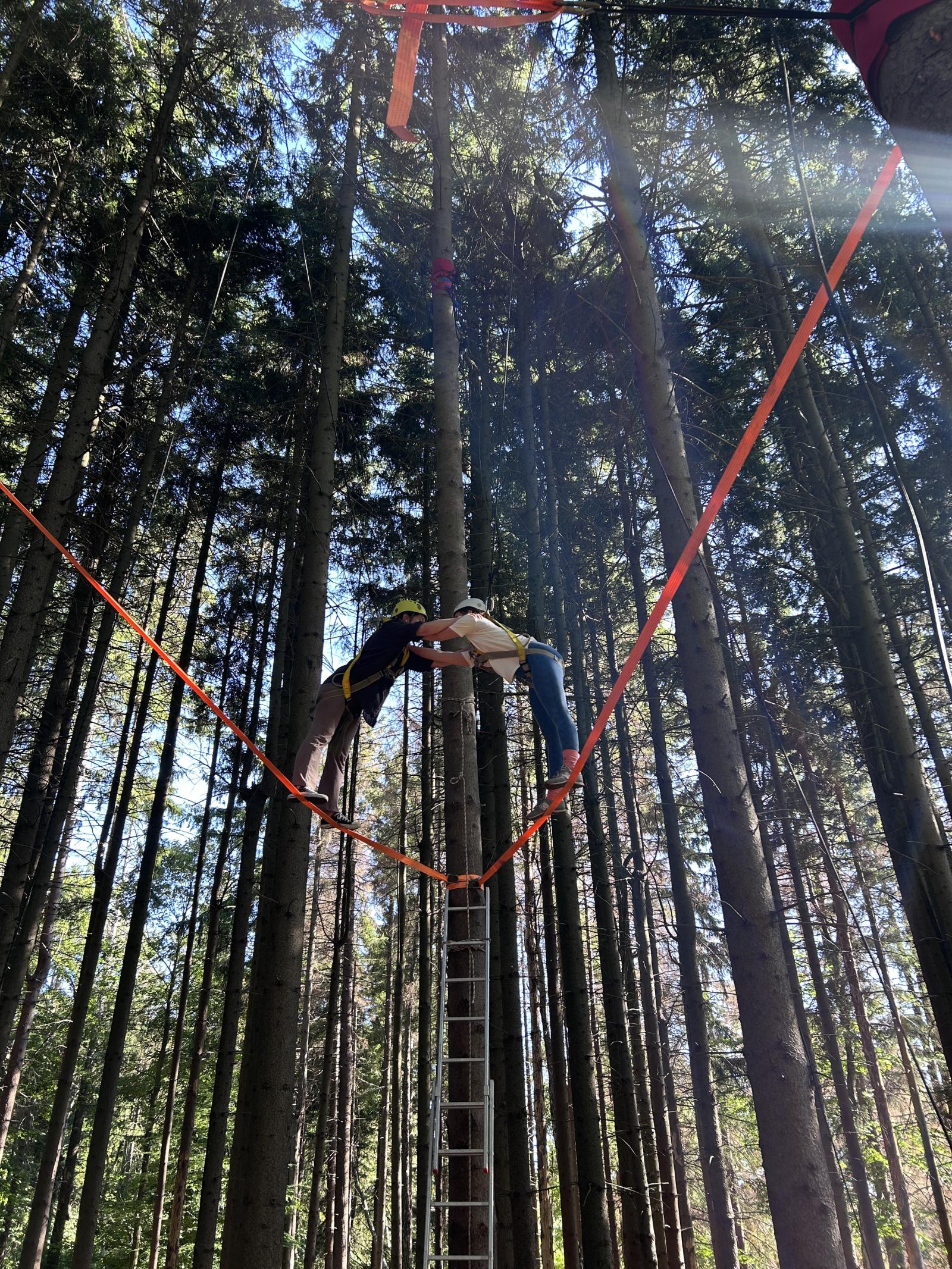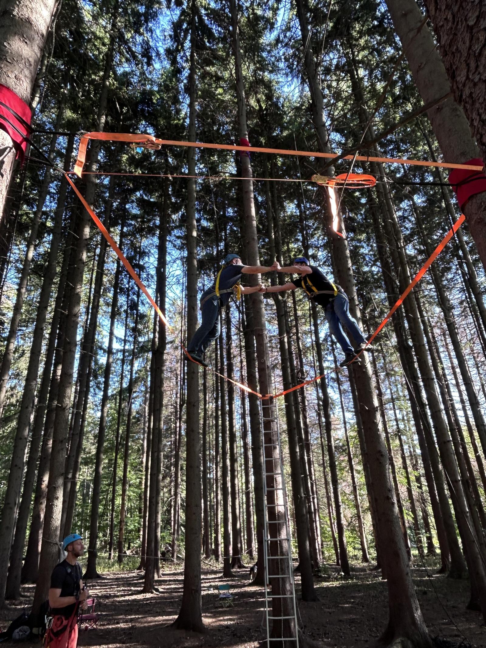 Azonban az olyan szintű komfortzóna-elhagyásra, amin többször is áteshettünk az öt nap során, nem igazán lehet felkészülni. Másztunk fel hét méteres, a csoport által biztosított pelenkaoszlopra, jártunk végig szintén hihetetlen magasra kötött V alakú slackline-on egymást biztosítva. Gyalogoltunk hegyen-völgyön több mint hét órát nehezített körülmények között, támogatva egymást és időnként hordozva közösen az ilyen-olyan nyűgöket. Semmivel sem összehasonlítható élmény ez a kontrollált kontrollvesztés, amikor hiába tudja az agyad egyik része, hogy minden tökéletesen biztonságos, mégis reszketnek a tagjaid.